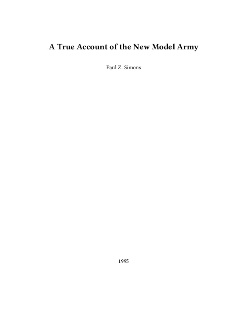 Zine A True Account of the New Model Army Author: Paul Z. SimonsPublished: 1995Language: enCatalog: The Anarchist Library9 pages. Read online: html • pdf •imposed pdf • a4 pdf • epub • muse • tex Share: We mail all zines to incarcerated people for free.