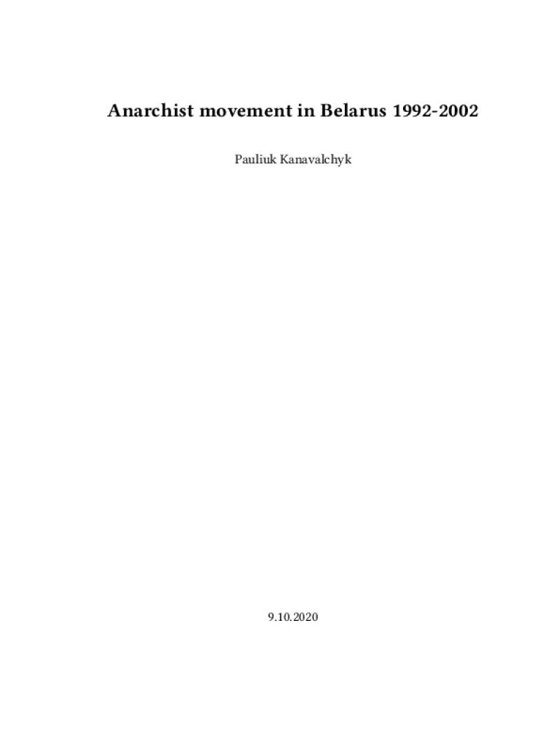 Zine Anarchist movement in Belarus 1992-2002 Author: Pauliuk KanavalchykPublished: 9.10.2020Language: enCatalog: The Anarchist Library15 pages. Read online: html • pdf •imposed pdf • a4 pdf • epub • muse • tex Share: We mail all zines to incarcerated people for free.