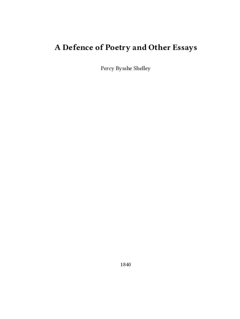 Zine A Defence of Poetry and Other Essays Author: Percy Bysshe ShelleyPublished: 1840Language: enCatalog: The Anarchist Library50 pages. Read online: html • pdf •imposed pdf • a4 pdf • epub • muse • tex Share: We mail all zines to incarcerated people for free.