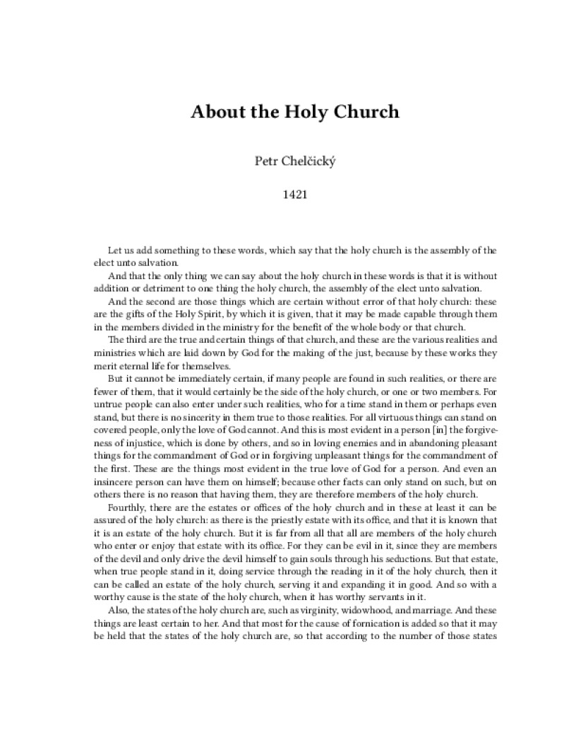 Zine About the Holy Church Author: Petr Chel?ickýPublished: 1421Language: enCatalog: The Anarchist Library5 pages. Read online: html • pdf •imposed pdf • a4 pdf • epub • muse • tex Share: We mail all zines to incarcerated people for free.