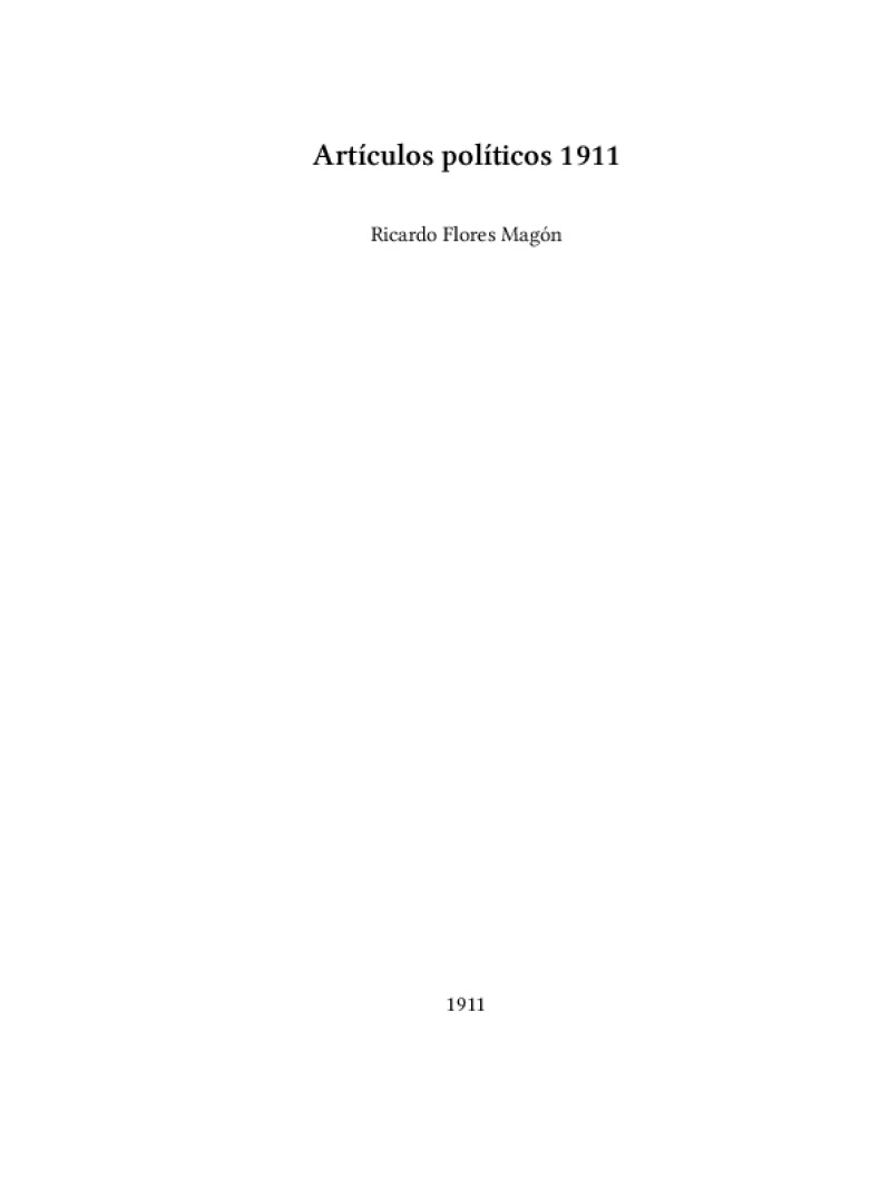 Zine Artículos políticos 1911 Author: Ricardo Flores MagónPublished: 1911Language: esCatalog: The Anarchist Library128 pages. Read online: html • pdf •imposed pdf • a4 pdf • epub • muse • tex Share: We mail all zines to incarcerated people for free.
