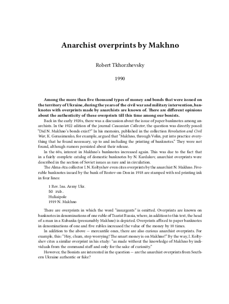 Zine Anarchist overprints by Makhno Author: Robert TkhorzhevskyPublished: 1990Language: enCatalog: The Anarchist Library4 pages. Read online: html • pdf •imposed pdf • a4 pdf • epub • muse • tex Share: We mail all zines to incarcerated people for free.