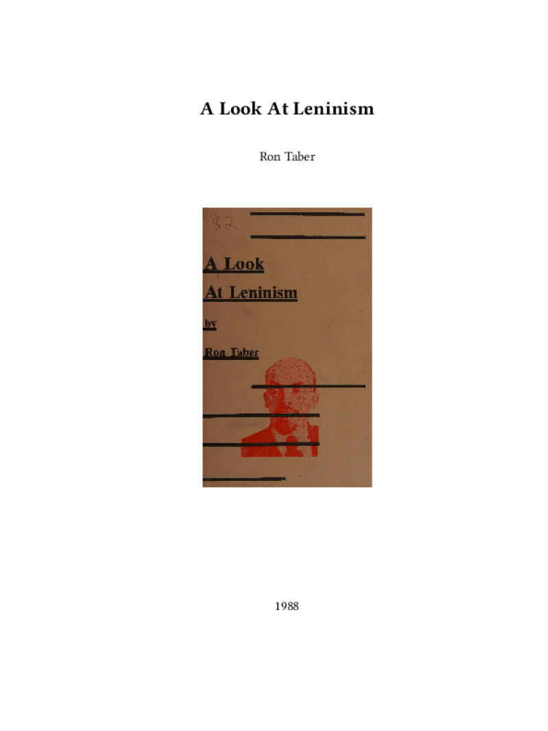 Zine A Look At Leninism Author: Ron TaberPublished: 1988Language: enCatalog: The Anarchist Library72 pages. Read online: html • pdf •imposed pdf • a4 pdf • epub • muse • tex Share: We mail all zines to incarcerated people for free.