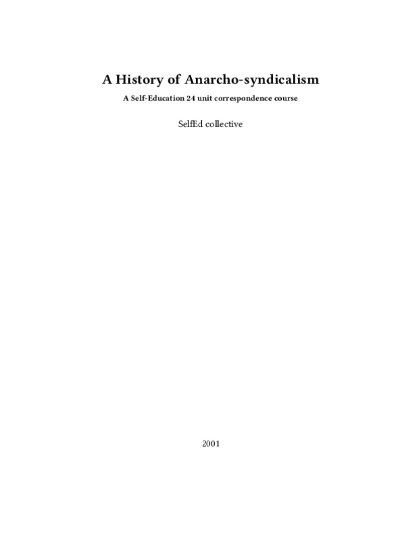 Zine A History of Anarcho-syndicalism Author: SelfEd collectivePublished: 2001Language: enCatalog: The Anarchist Library423 pages. Read online: html • pdf •imposed pdf • a4 pdf • epub • muse • tex Share: We mail all zines to incarcerated people for free.