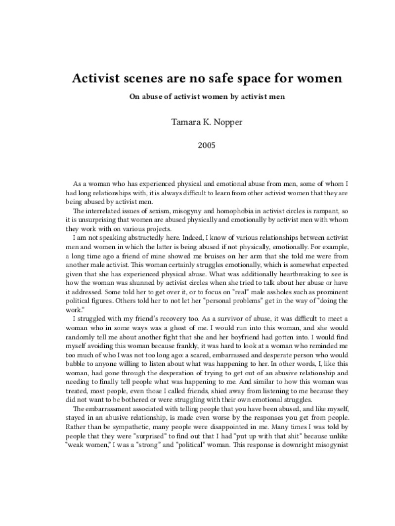 Zine Activist scenes are no safe space for women Author: Tamara K. NopperPublished: 2005Language: enCatalog: The Anarchist Library5 pages. Read online: html • pdf •imposed pdf • a4 pdf • epub • muse • tex Share: We mail all zines to incarcerated people for free.