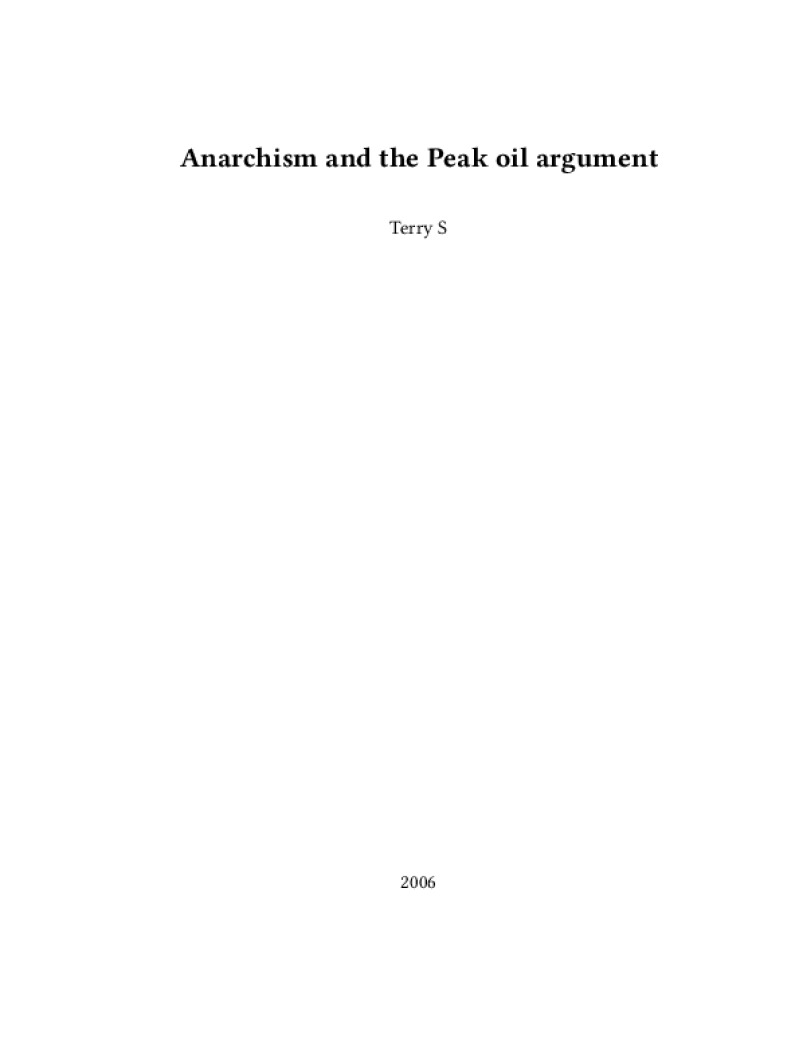 Zine Anarchism and the Peak oil argument Author: Terry SPublished: 2006Language: enCatalog: The Anarchist Library40 pages. Read online: html • pdf •imposed pdf • a4 pdf • epub • muse • tex Share: We mail all zines to incarcerated people for free.