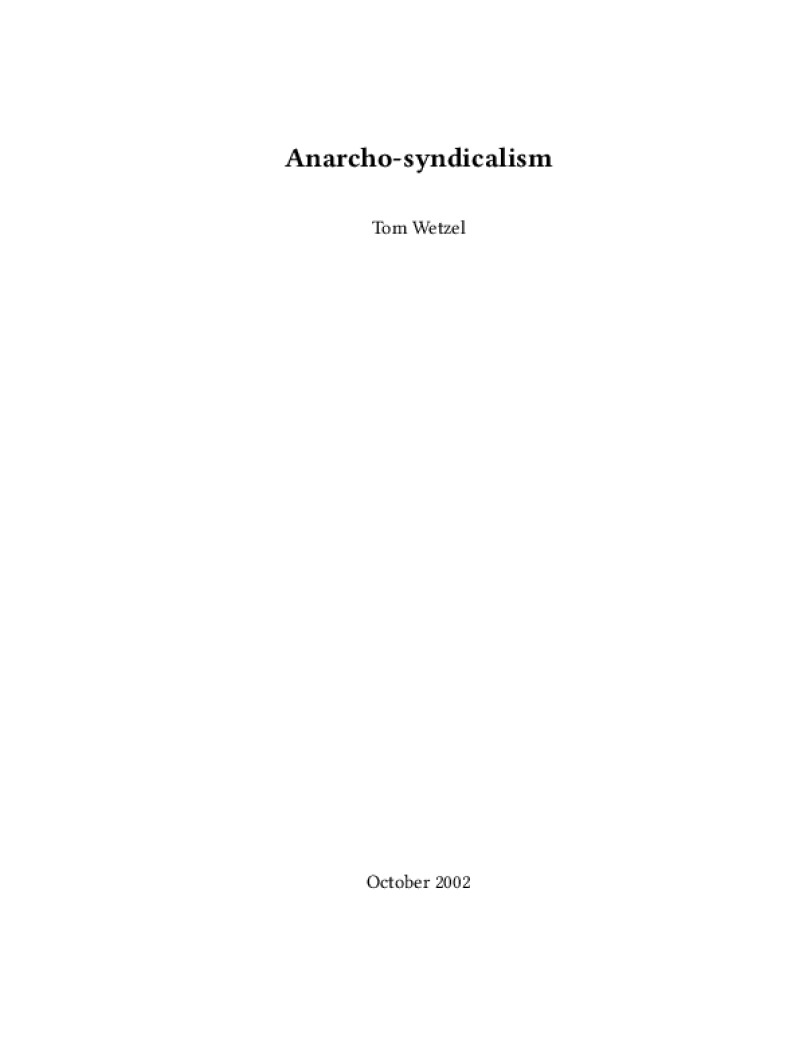 Zine Anarcho-syndicalism Author: Tom WetzelPublished: October 2002Language: enCatalog: The Anarchist Library8 pages. Read online: html • pdf •imposed pdf • a4 pdf • epub • muse • tex Share: We mail all zines to incarcerated people for free.