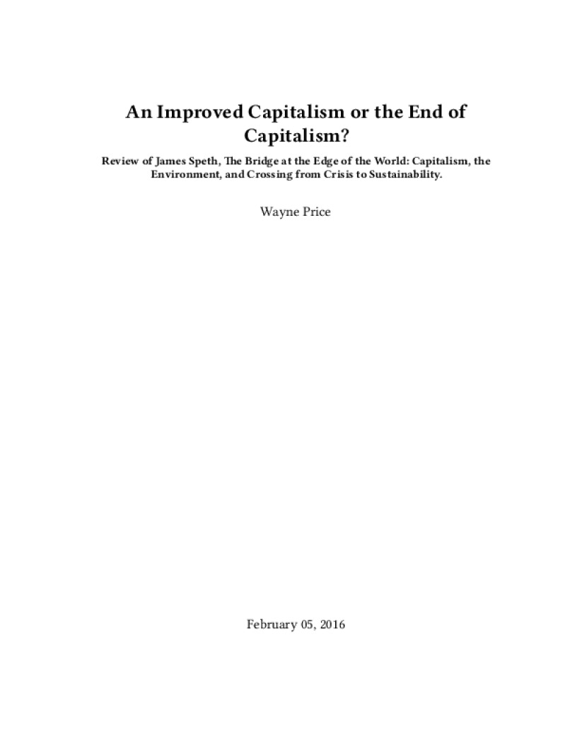 Zine An Improved Capitalism or the End of Capitalism? Author: Wayne PricePublished: February 05, 2016Language: enCatalog: The Anarchist Library9 pages. Read online: html • pdf •imposed pdf • a4 pdf • epub • muse • tex Share: We mail all zines to incarcerated people for free.