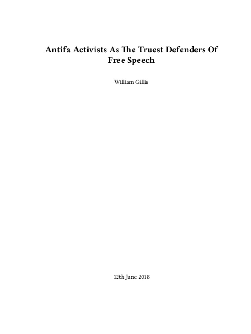 Zine Antifa Activists As The Truest Defenders Of Free Speech Author: William GillisPublished: 12th June 2018Language: enCatalog: The Anarchist Library38 pages. Read online: html • pdf •imposed pdf • a4 pdf • epub • muse • tex Share: We mail all zines to incarcerated people for free.