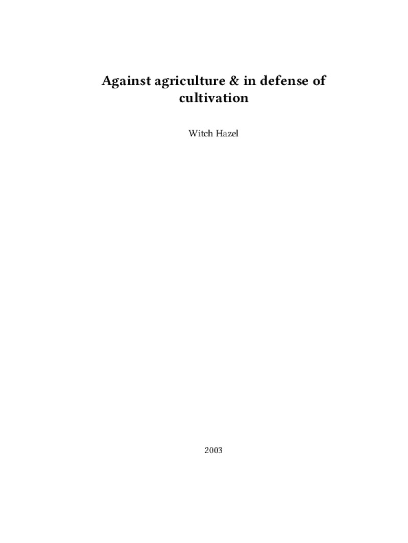 Zine Against agriculture & in defense of cultivation Author: Witch HazelPublished: 2003Language: enCatalog: The Anarchist Library9 pages. Read online: html • pdf •imposed pdf • a4 pdf • epub • muse • tex Share: We mail all zines to incarcerated people for free.