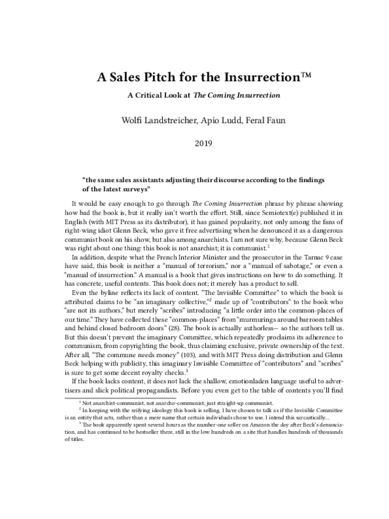 A Sales Pitch for the Insurrection™
